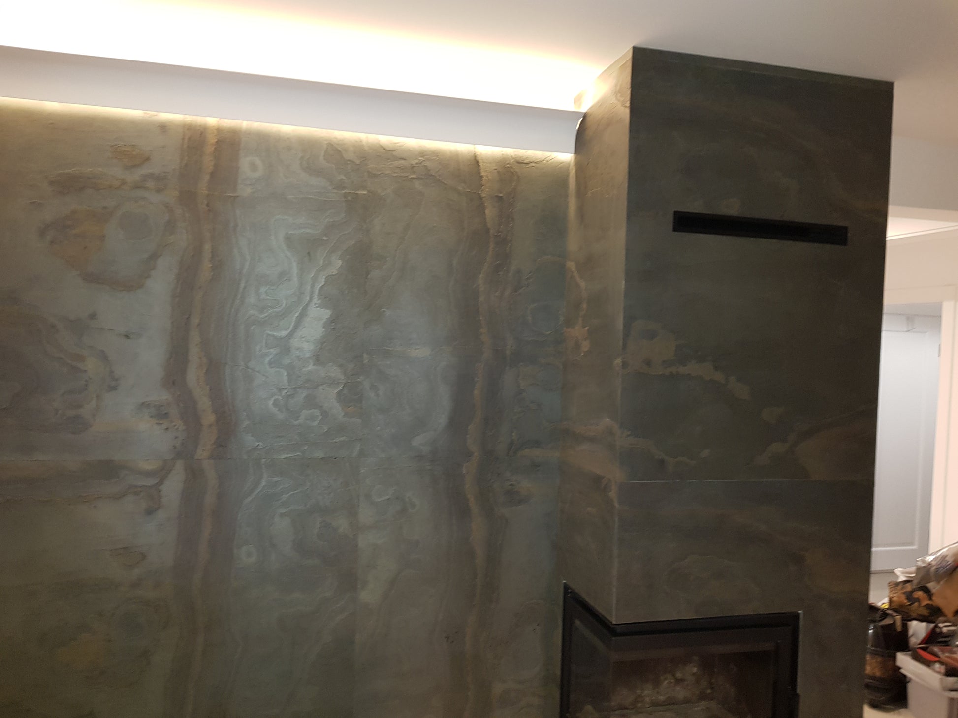 California Gold Stone Veneer is a decorative finishing material. grey and gold slate finish with a varied natural pattern in the material. It is a fantastic option if you are looking for a sophisticated look from a subtle and textured natural slate finish Made of natural stone, it brings an organic character to interiors, giving them coziness and elegance.